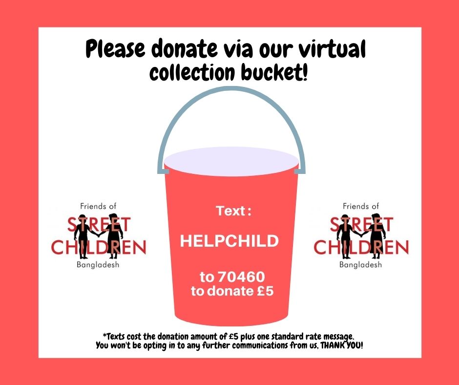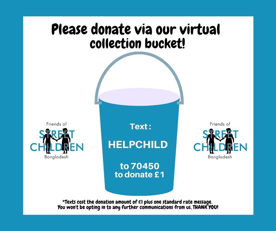 FSCBD have released a series of online campaigns to make it easier for you to donate to the street children of Bangladesh. You can now donate by text message – simply text the words HELPCHILD to 70450 to donate £1, or HELPCHILD to 50460 to donate £5. Texts cost the donated amount plus one standard rate message.