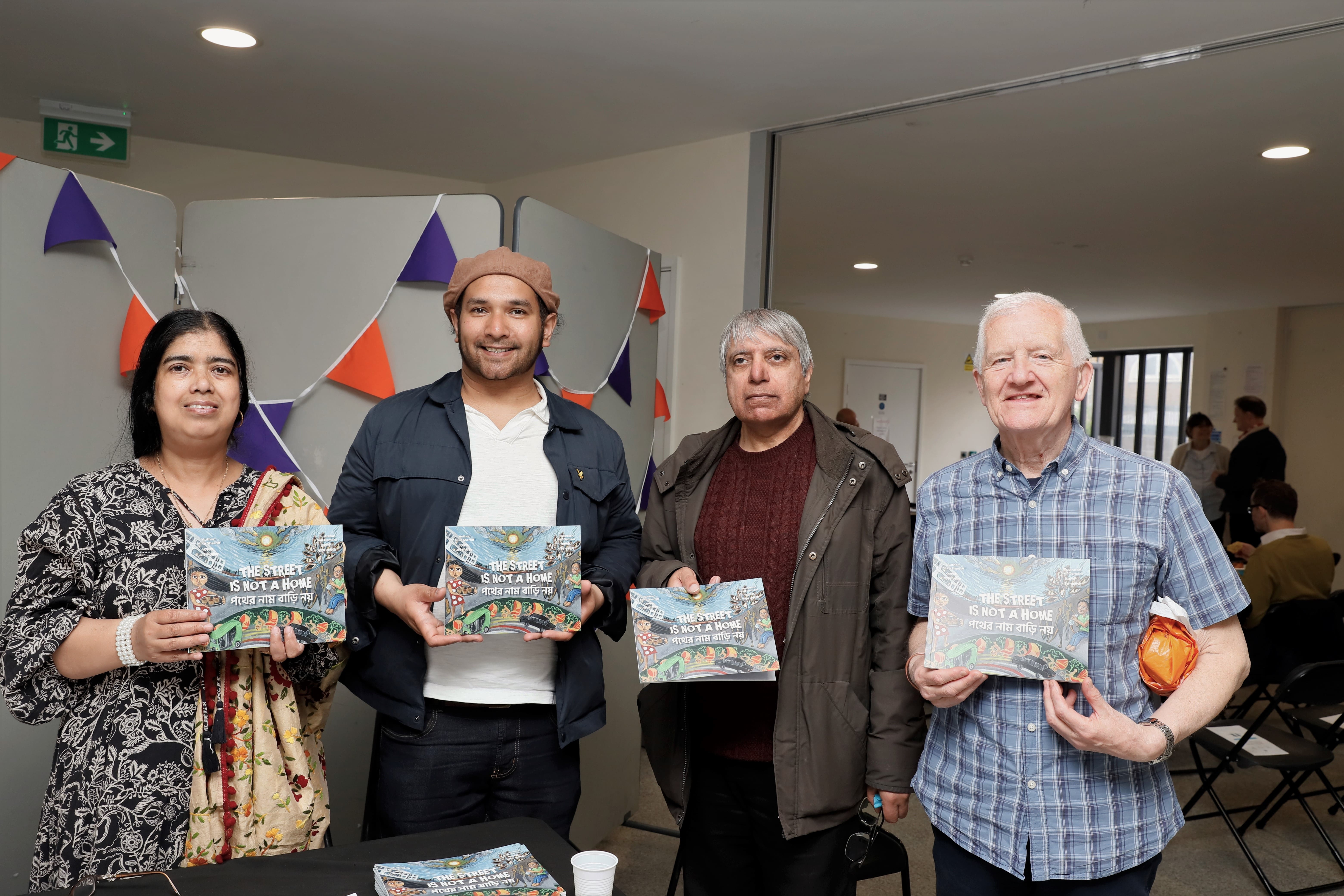 The UK launch of the publication The Street is Not a Home took place at the Hason Raja Centre in Whitechapel, East London on Saturday 20 May. We heard from Pia MacRae Chief Executive Officer at Consortium For Street Children, Maium Talukdar the Deputy Mayor and Cabinet Member for Education, Youth and Lifelong Learning at Tower Hamlets, Rubaiya Murshed the Author of Nobody’s Children, former teacher Truus Jansen, BokBok Books publisher Rumana Yasmin, Author Mike Sherriff and Illustrator Saif Osmani. The panel discussion was led by former Camden Councillor Abdul Hai OBE.