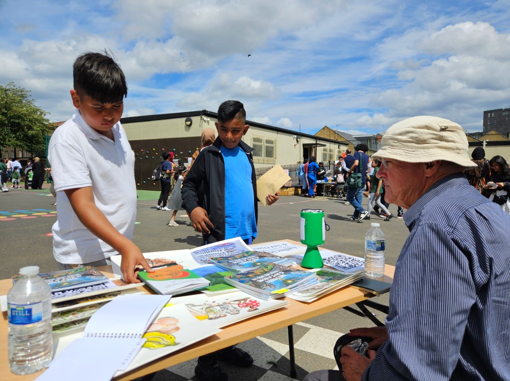 The rain couldn’t stop parents and children from finding out more and from buying a copy of The Street is Not a Home during the School Fair at Cayley Primary School.