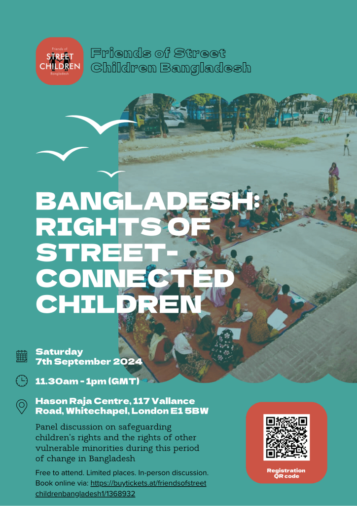 The recent protests in Bangladesh and the response of the authorities has resulted in the death and injury of hundreds of students and many others including children. Street connected children are especially vulnerable because curfews make it even more difficult to survive on the streets and there is a huge risk of being caught in the middle of street confrontations. During our programme we will discuss the risks faced by children and what the new government in Bangladesh should do to ensure their future safety and security. We will be joined online by the Executive Director of LEEDO, people involved in the protests and young people who took to the streets to restore order on the busy roads of Dhaka. We hope to be joined online by children affected by the turmoil on the streets. We will discuss how Friends of Street Children Bangladesh responded to the situation and the approach of the British Government in these circumstances.