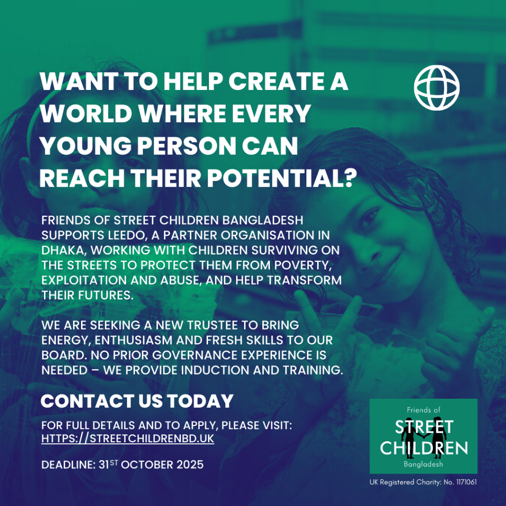 Friends of Street Children Bangladesh is a small charity working with a partner organisation called LEEDO based in Dhaka. Hundreds of children survive in poverty, facing exploitation and abuse, on the streets of Dhaka. LEEDO works with these children to transform their lives. Friends of Street Children Bangladesh is a small UK based charity that support this work by raising funds for work in Bangladesh and raising awareness about the situation faced by the children and their future potential.